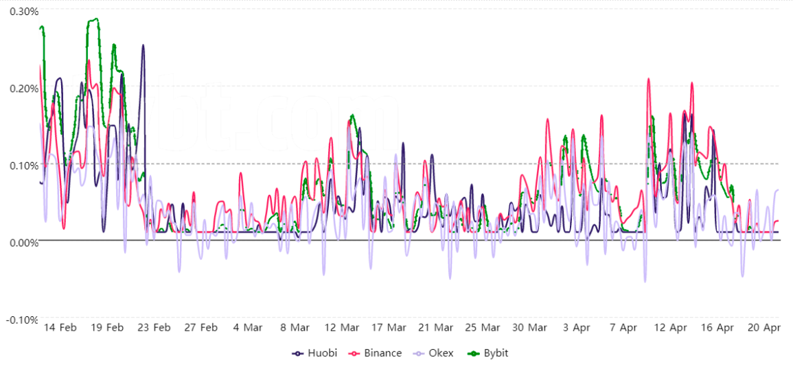 The above chart exhibits that Bybit and Binance often show the next funding price, whereas OKEx continuously presents the bottom. Merchants want to know that there aren’t any guidelines imposing this, and the speed might differ between property or momentarily leverage demand.
