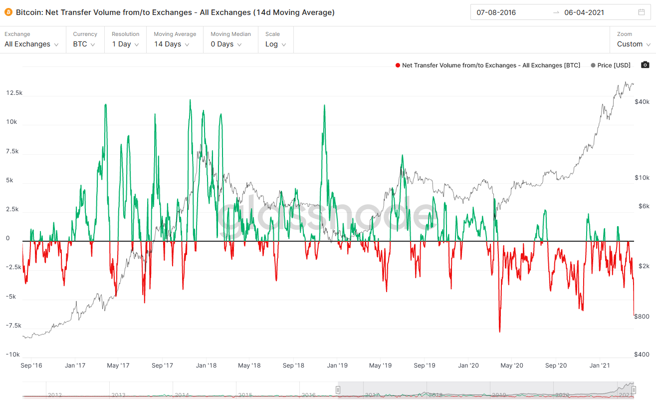 Regardless of materials promoting strain from whales, institutional demand for Bitcoin has not slowed down. The web switch quantity of Bitcoin from/to exchanges is deep within the crimson, virtually at a historic low, which means that extra Bitcoin is at the moment being withdrawn from exchanges than deposited.