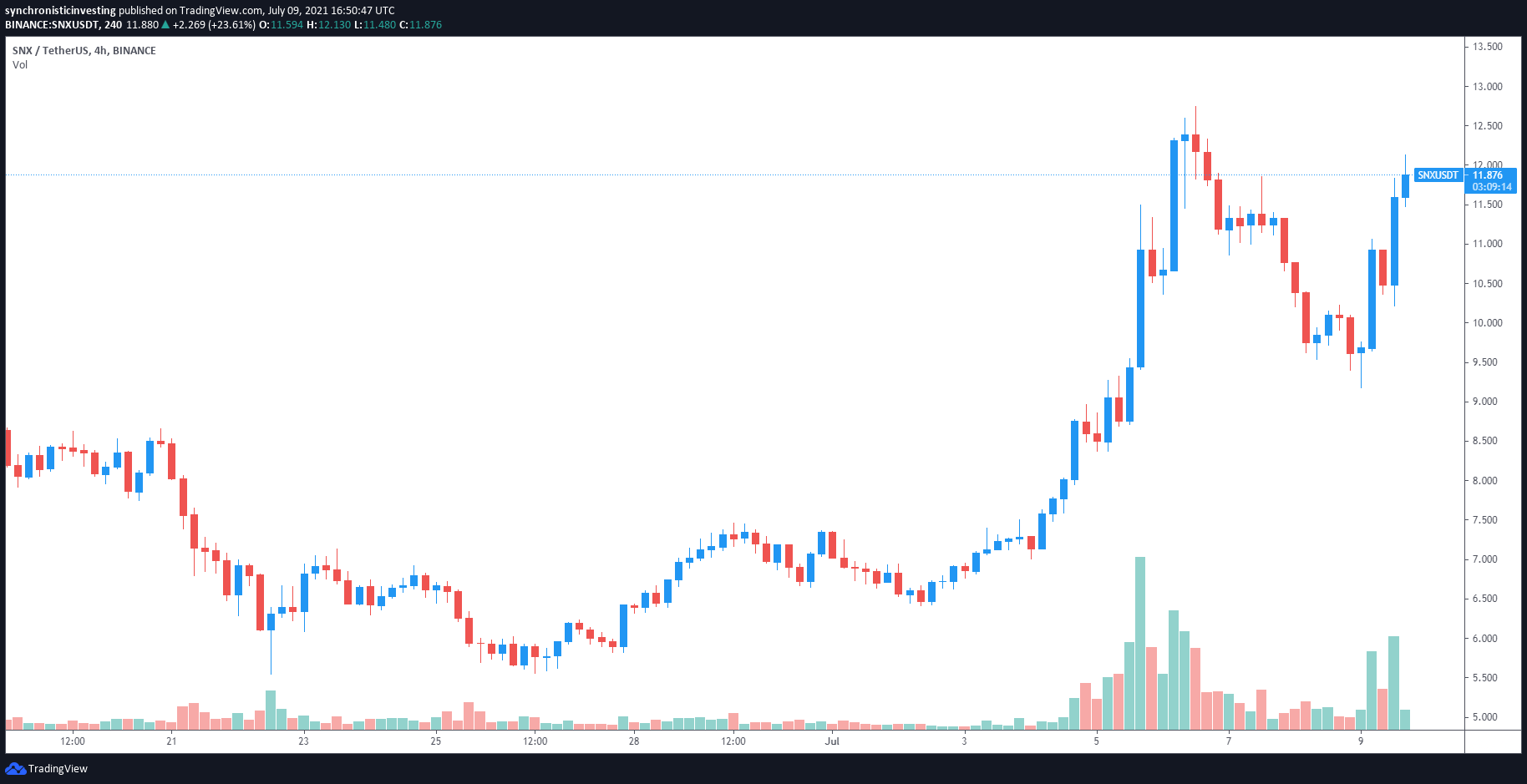 In keeping with information from Cointelegraph Markets Professional, Synthetix (SNX) has been one of many strongest performers of the previous week, rallying 100% to hit a multi-week excessive of $12.76 on July 5 as pleasure for DeFi-related tokens started to construct.