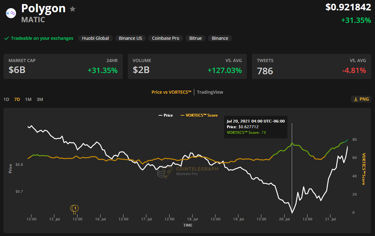 VORTECS™ knowledge from Cointelegraph Markets Professional started to detect a bullish outlook for MATIC on July 20, previous to the latest worth rise.