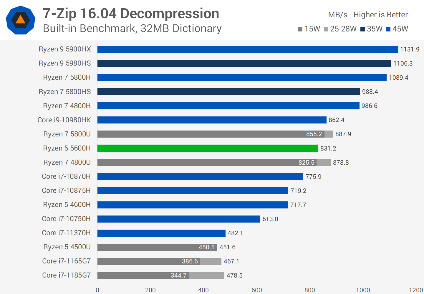 However in decompression Ryzen actually is a dominant chip. The 5600H continues to be 16% quicker than the 4600H so very near what we noticed in compression, however this pace bump permits the 5600H to match the 10980HK and pull properly forward of the 10750H. So like we’ve seen with Ryzen 7 components during the last 18 months, decompression is greatest on an AMD CPU.
