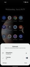 A brand new Web panel replaces the standard Wi-Fi controls. A single faucet of the “Web” fast toggle (which now not shows the presently linked Wi-Fi community identify) will carry up an inventory of obtainable and close by Wi-Fi connections, together with toggles for cellular knowledge connections. A protracted-press will open the brand new “Web” Setting display which mixes the Cell Networks web page with Wi-Fi.