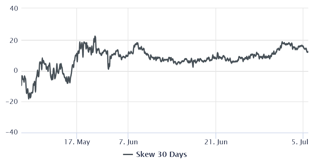 A 25% delta skew starting from -10% to +10% is often deemed impartial. Nevertheless, the indicator has been above such a variety since June 30, indicating worry from arbitrage desks and market markets.