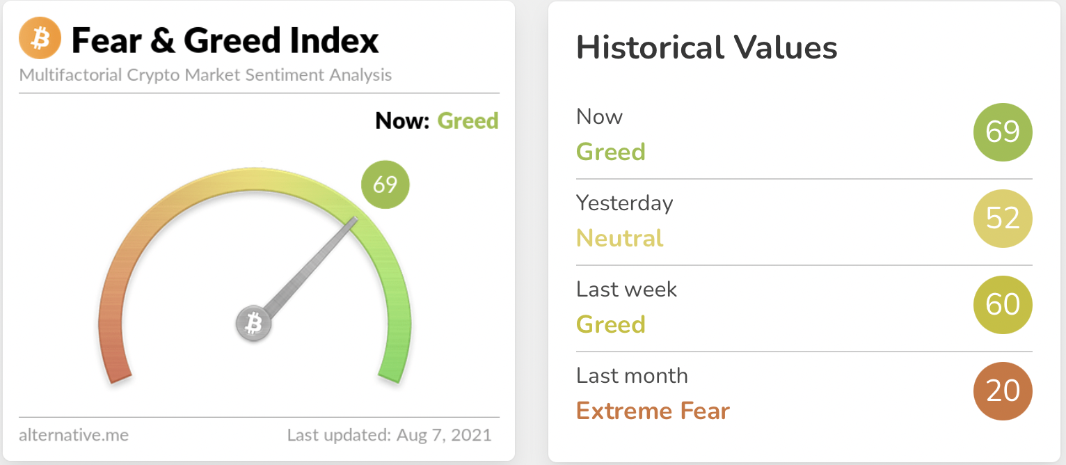 Alternatively, the favored Concern and Greed Index additionally touched 69, a rating that signifies a sentiment of Greed, which the market additionally hasn’t seen since Could.