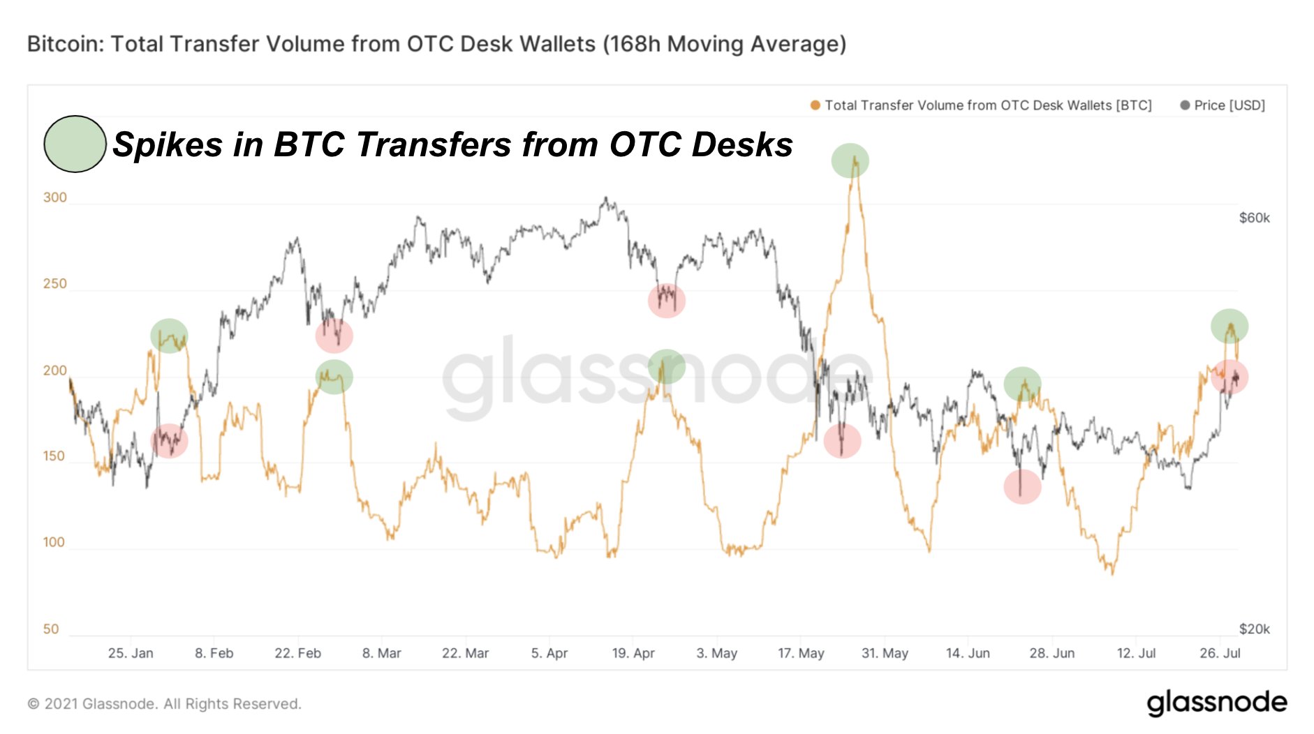 In Might and June following the comedown from these highs, OTC entities purchased on non permanent worth dips. The identical phenomenon has occurred all through the 2021 bull run, even earlier than all-time highs appeared and BTC/USD was nonetheless on the way in which up.