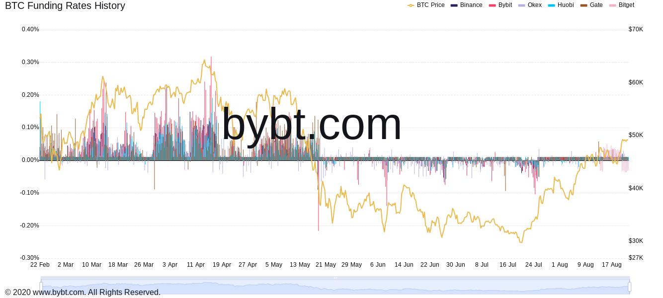 “As well as, we nonetheless have plenty of 50k places, suggesting we get rejected right here,” it added, additionally highlighting the “overhepositive funding charges throughout buying and selling platforms.