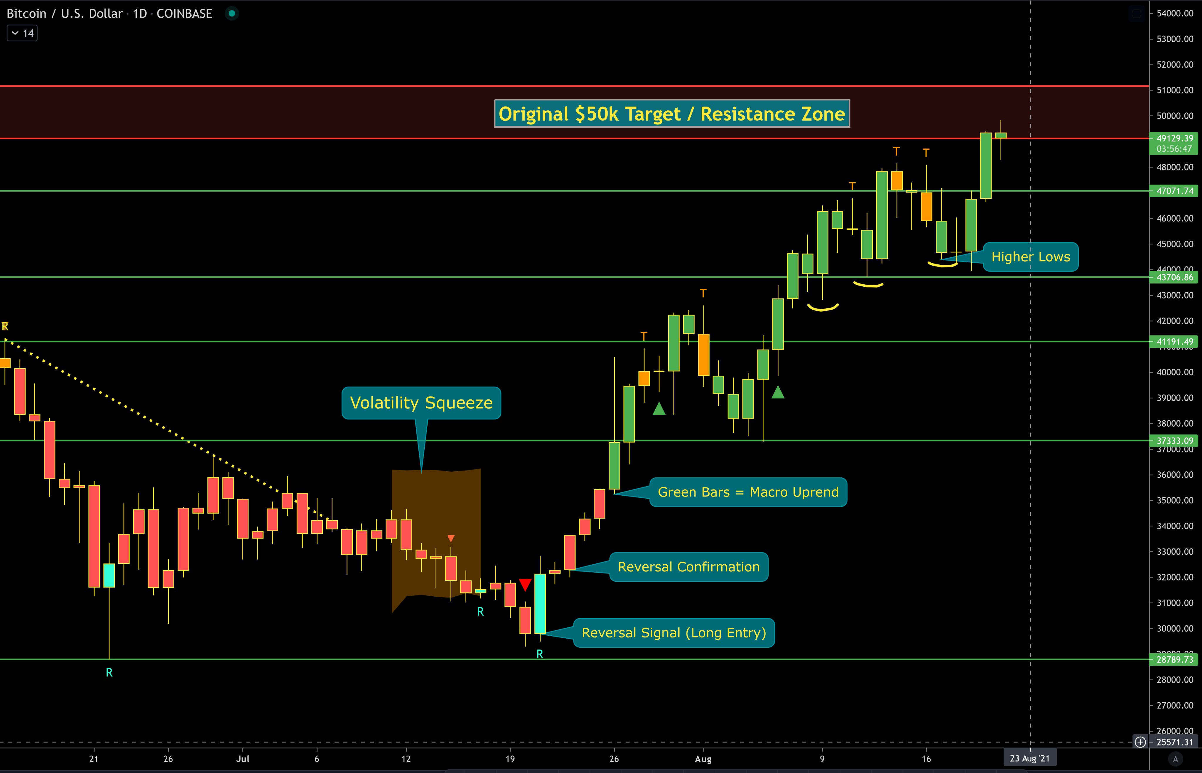 Bitcoin (BTC) edged nearer to $50,000 on Aug. 22 as issues over a bearish downturn made a well timed reappearance.