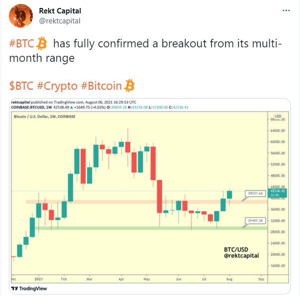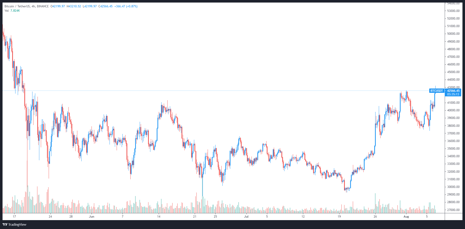 Bitcoin’s (BTC) worth rallied to a multi-month excessive at $43,231 on August 6 and this allowed the digital asset to interrupt freed from the buying and selling vary it had been caught in since Could.