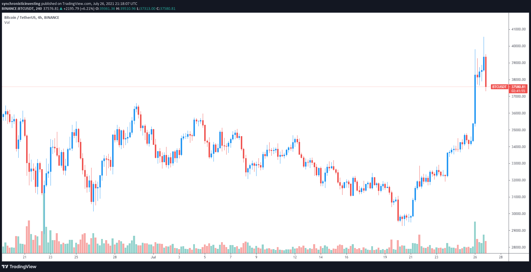 Bull market optimism returned to the cryptocurrency market on July 26 after Bitcoin (BTC) worth rallied above the $40,000 stage for the primary time in over six weeks.