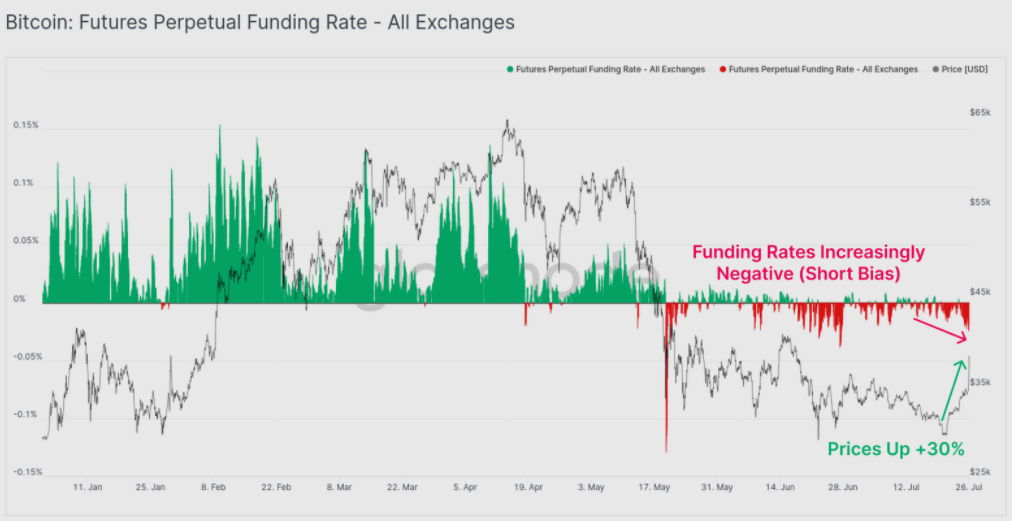 Whereas the transfer increased has the mark of a development change and has prompted some analysts to proclaim the bull market is again on monitor, on-chain information and the perpetual funding charges don’t totally concur with this perspective. Particularly when one considers that the present breakout might have solely been the results of an enormous brief squeeze.
