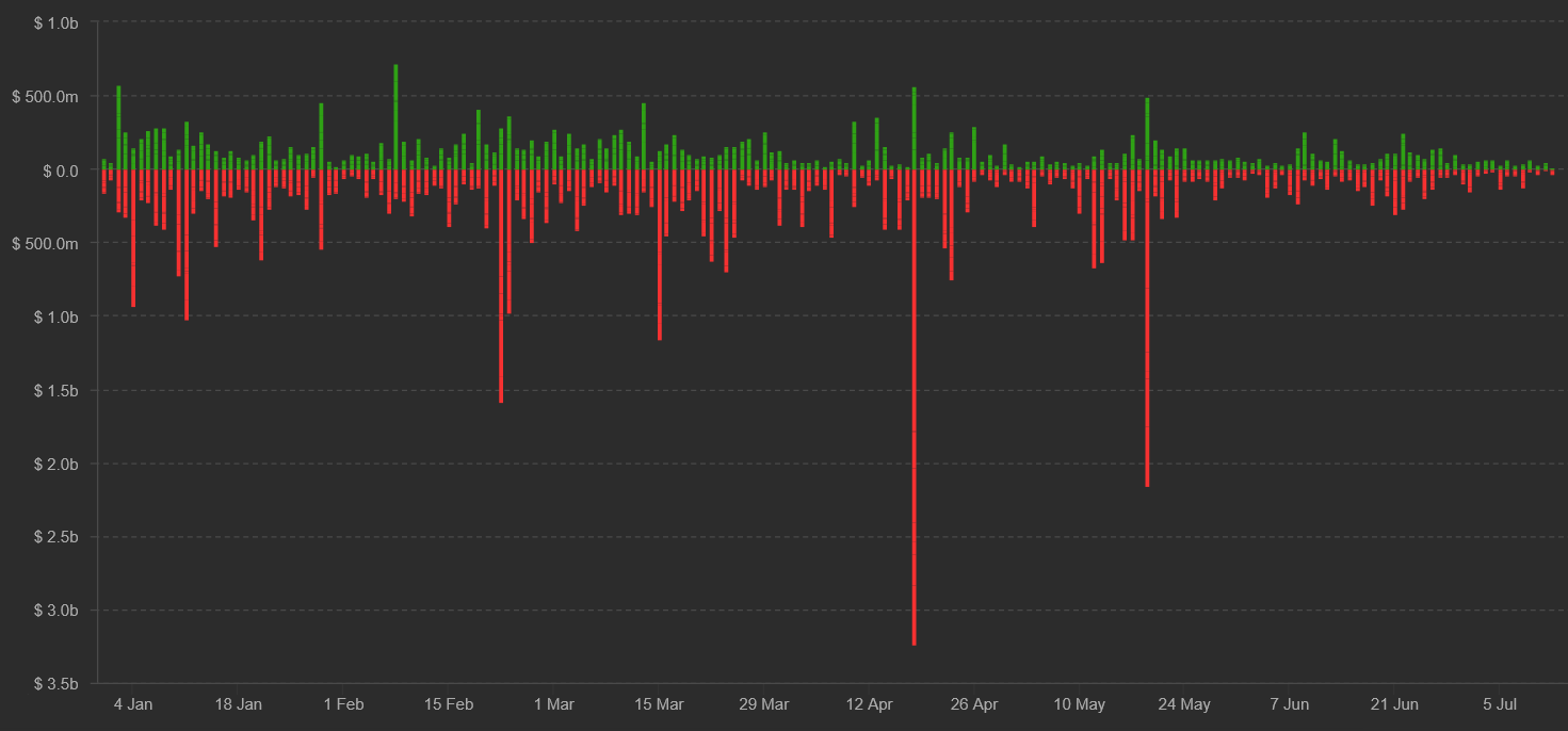 At the moment, we’re six and a half months into 2021 and there have been solely 7 occasions the place a $1 billion or bigger lengthy contract liquidation has occurred. So, moderately than being the norm, these are very uncommon conditions that may solely happen when merchants are utilizing extreme leverage.
