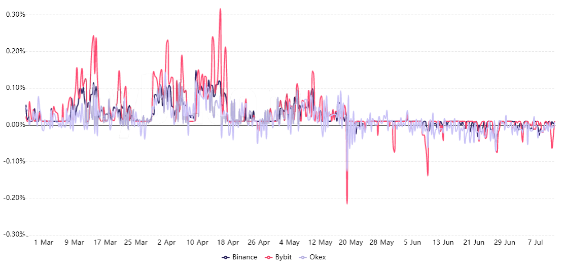Since Might 20, there hasn’t been a single day the place the 8-hour funding fee was greater than 0.05%. This proof signifies that consumers are unwilling to make use of excessive leverage, and with out it, it is more durable to create $1 billion or greater liquidations.