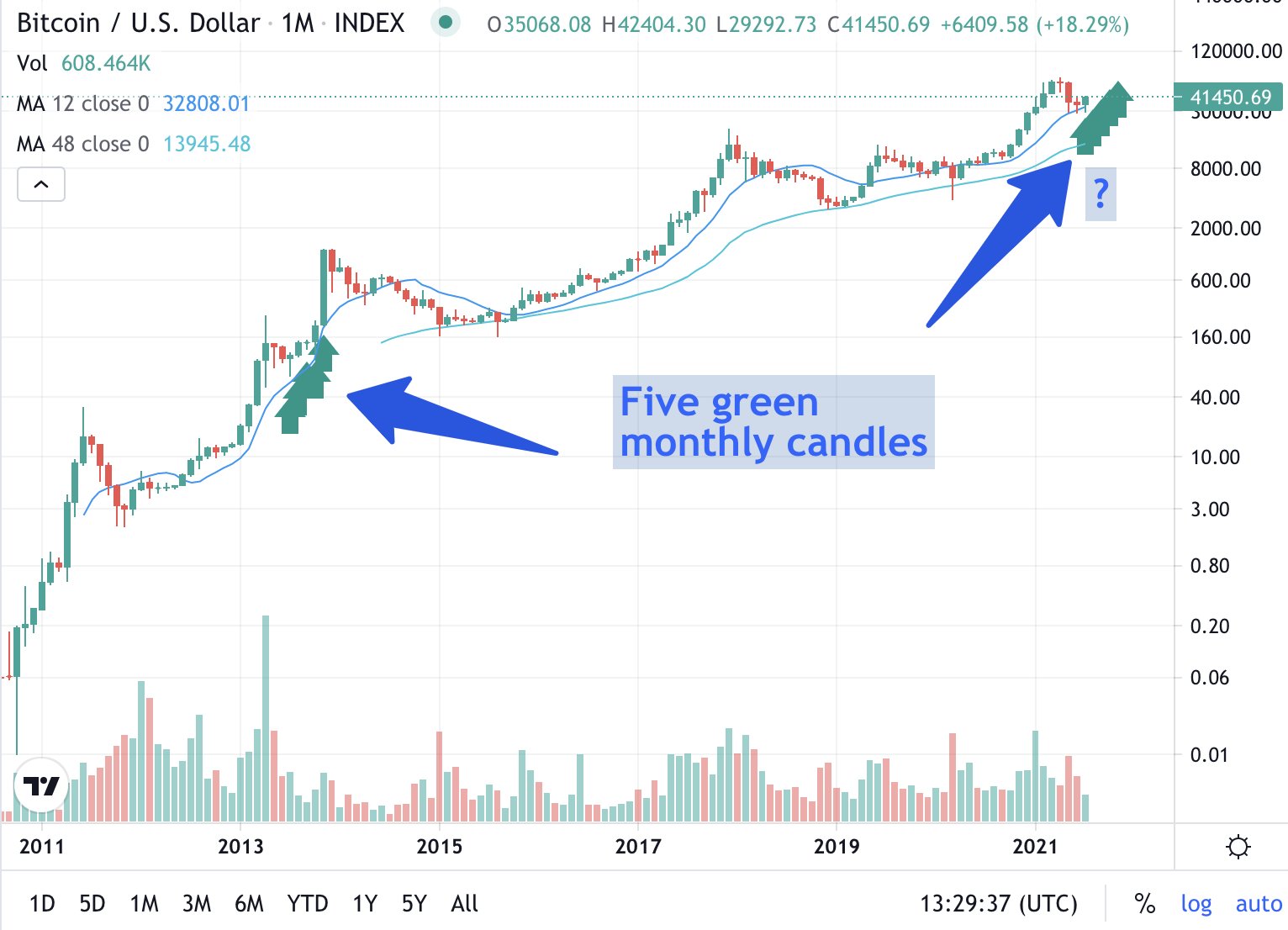 “Following a troubling three months of reports and value motion, bitcoin went on to print 5 inexperienced month-to-month candles in a row and went up ~10x within the second half of 2013,” Jeff Ross, founder and CEO of Vailshire Capital, said in Twitter feedback Saturday.