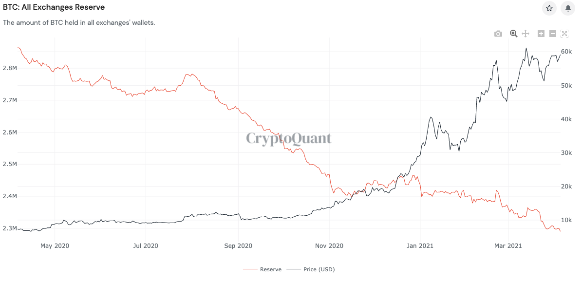 Throughout exchanges, reserves of BTC are nonetheless falling, down beneath 2.3 million as of this week.