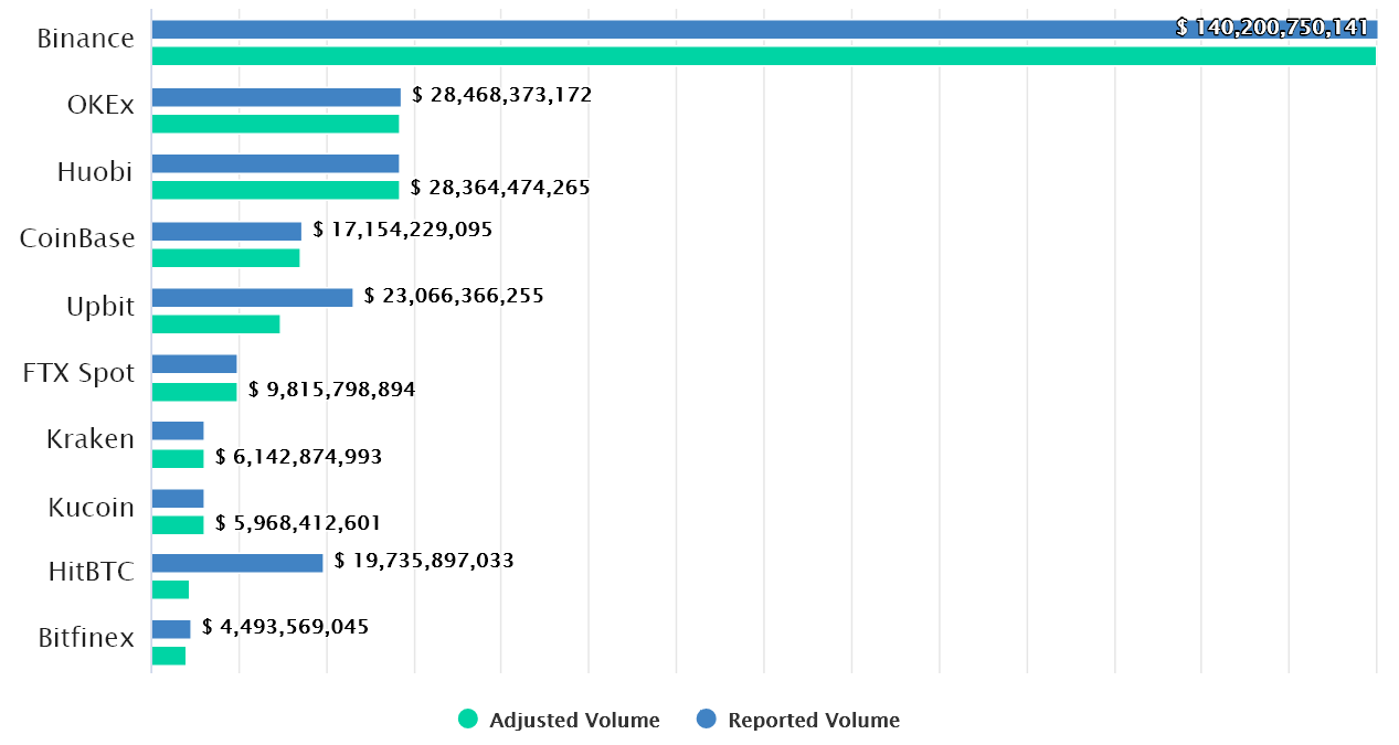 Take discover of how the three ‘Asia-based’ exchanges stay dominant, whereas Coinbase, Kraken, and Bitfinex are nowhere close to their buying and selling actions.