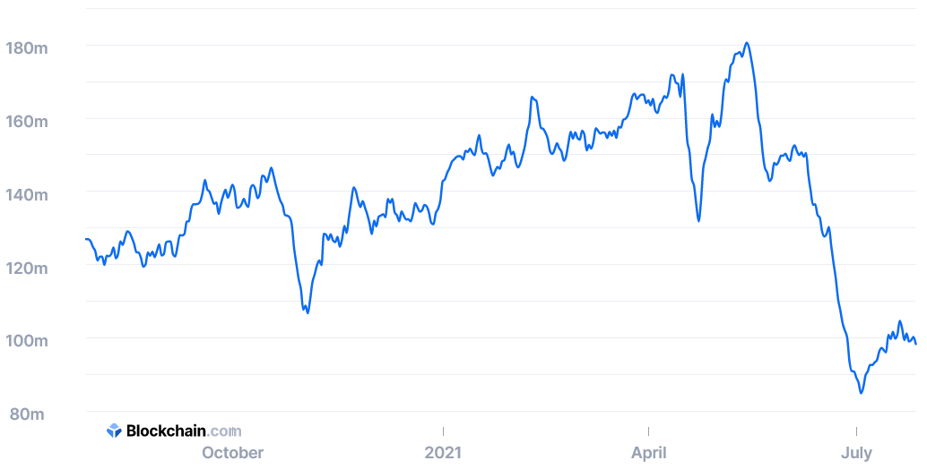 After peaking at 186 million TH/s on Could 12, the Bitcoin community hash fee, an estimate of the whole mining energy, began to plunge. The primary couple of weeks had been as a result of restrictions to coal-powered areas, estimated at 25% of the mining capability.