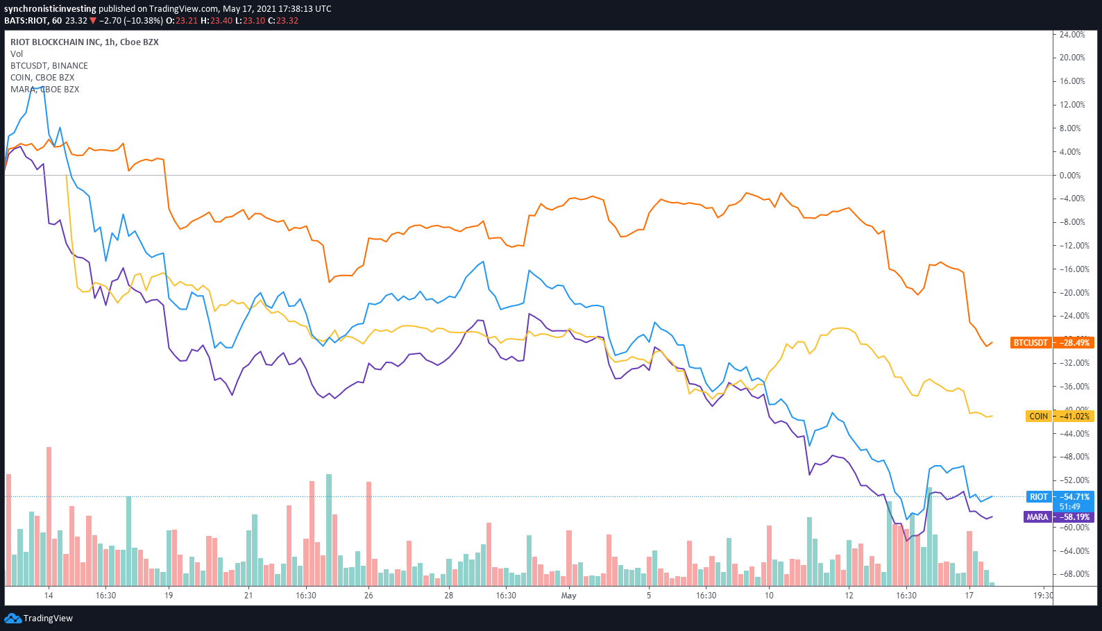 This seems to be the identical for blockchain-related shares that commerce within the conventional monetary markets, and a fast look on the charts exhibits they’ve mirrored Bitcoin’s efficiency over the previous a number of months.
