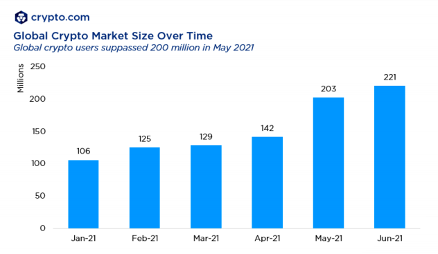 Main digital asset firm Crypto.com launched its newest research on measuring world cryptocurrency customers on Thursday, discovering that the variety of crypto customers worldwide has greater than doubled from 100 million in January to 221 million in June.