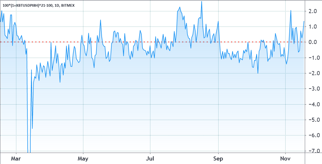Traditionally, this indicator shifts between 0% and a pair of% per week, though it’d maintain larger ranges for months throughout bull runs. Then again, a damaging funding charge enduring greater than a few days was once unusual.