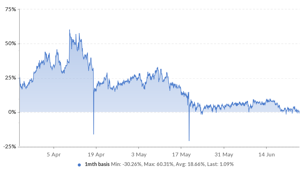 Proper now, it’s not possible to estimate the timing or set off that can trigger consumers to realize confidence and at last convey the futures market premium again to 10%.