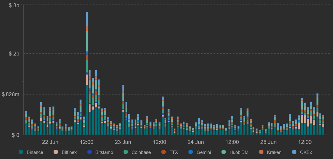 One should analyze spot exchanges’ volumes to know whether or not Bitfinex performed a big function within the Bitcoin worth correction initiated within the early hours of June 25.