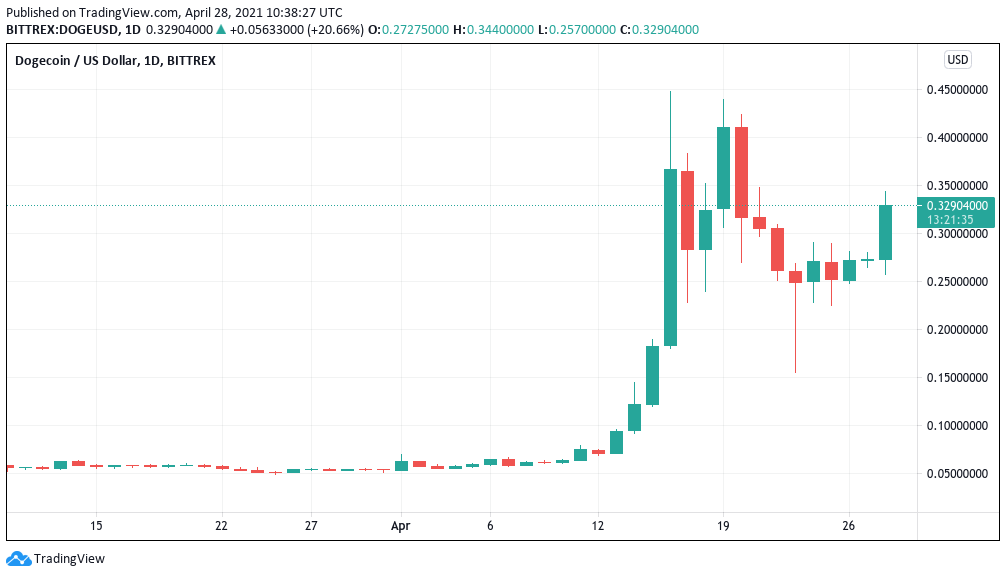 The newest tweet nonetheless immediately positioned DOGE within the prime three each day movers with 20% features to $0.32, beating Ether (ETH), which had itself simply posted new all-time highs.