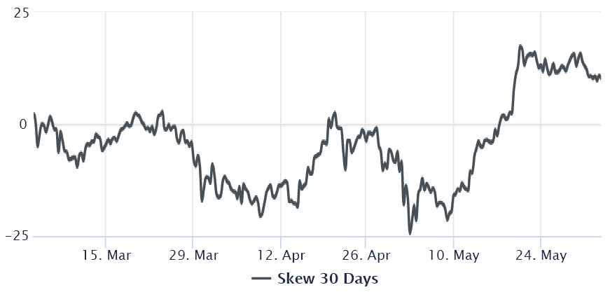 Much like the futures premium, Ether choices’ 25% delta skew has been ranging above 10% since Might 19. This means that market makers and whales are unwilling to supply draw back safety, indicating “worry.”