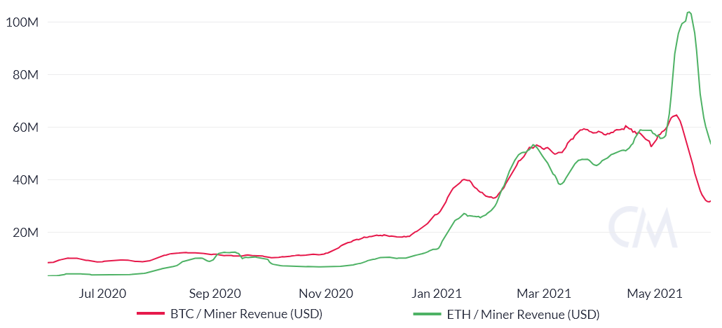 Discover how Ethereum miners’ income considerably outpaced income for Bitcoin miners in Might, reaching a $76 million each day common. This determine leapfrogged Bitcoin’s $45 million in miners’ income, together with the 6.25 BTC subsidy per block, plus transaction charges.
