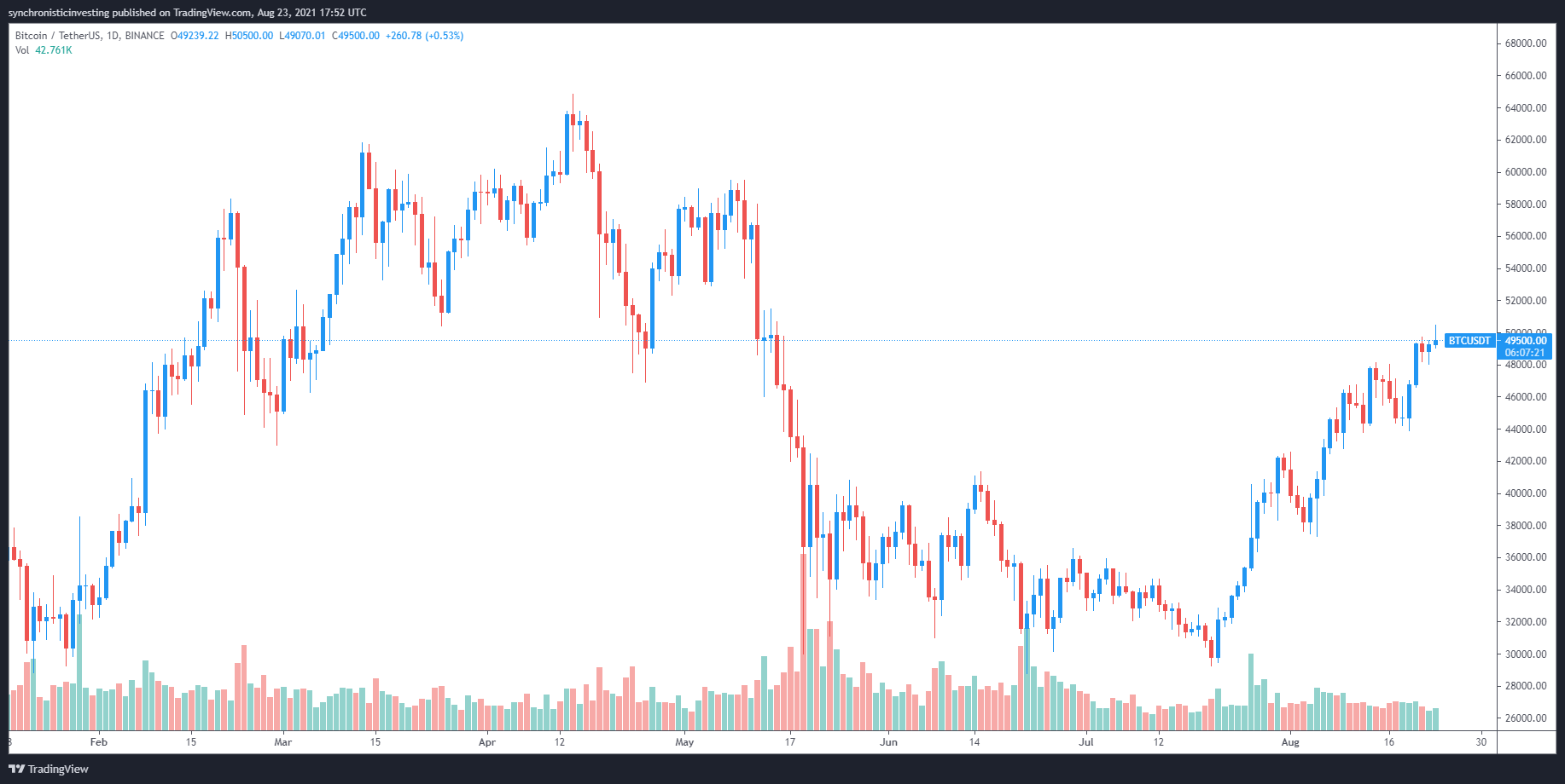 Bitcoin’s rally to $50,000 led many to imagine that the worth is just going to go up from right here, however analysts from Decentrader supplied a phrase of warning as a result of the lackluster quantity seen in the course of the latest transfer may very well be a sign that the worth might must regroup at decrease help ranges.