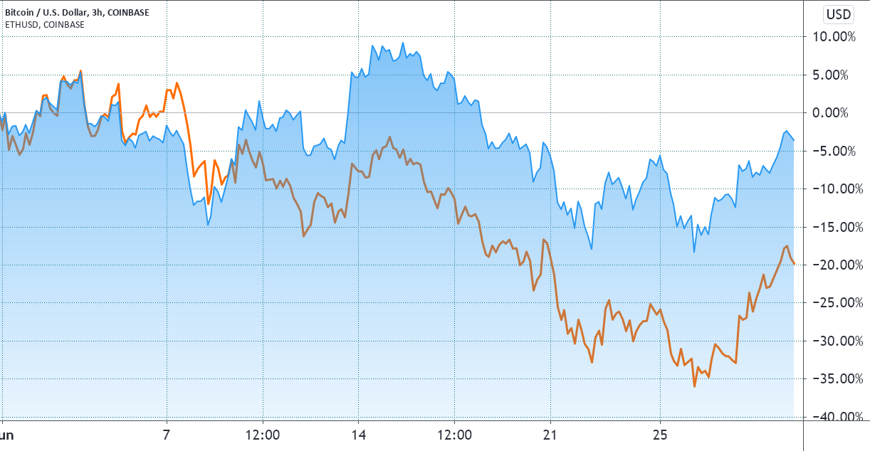 Take discover of how Ether is underperforming Bitcoin by 16% in June. The London laborious fork is scheduled for July, and its core proposal — dubbed as EIP-1559 — will cap Ethereum’s fuel charges. Subsequently, the value motion might be associated to unhappy miners because the community migrates out of Proof-of-Work (PoW).