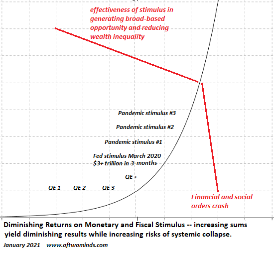 The superficial “return to regular” narrative focuses solely on first order results: now that folks can dispense with masks and social distancing, they’re resuming their pre-pandemic spending orgy with a vengeance, which augurs nice earnings for Company America and better tax revenues. Yea for “return to regular.”