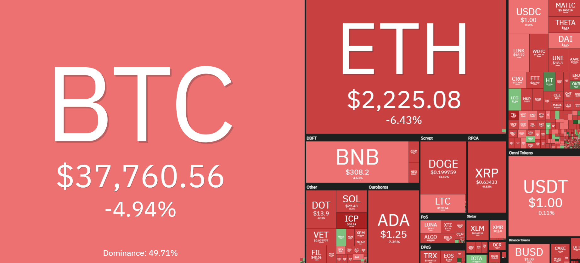 Information from Cointelegraph Markets Professional and TradingView reveals {that a} mid-day try by bulls to raise the worth of BTC again above the $40,000 degree was rejected leading to a value pullback to $37,500.