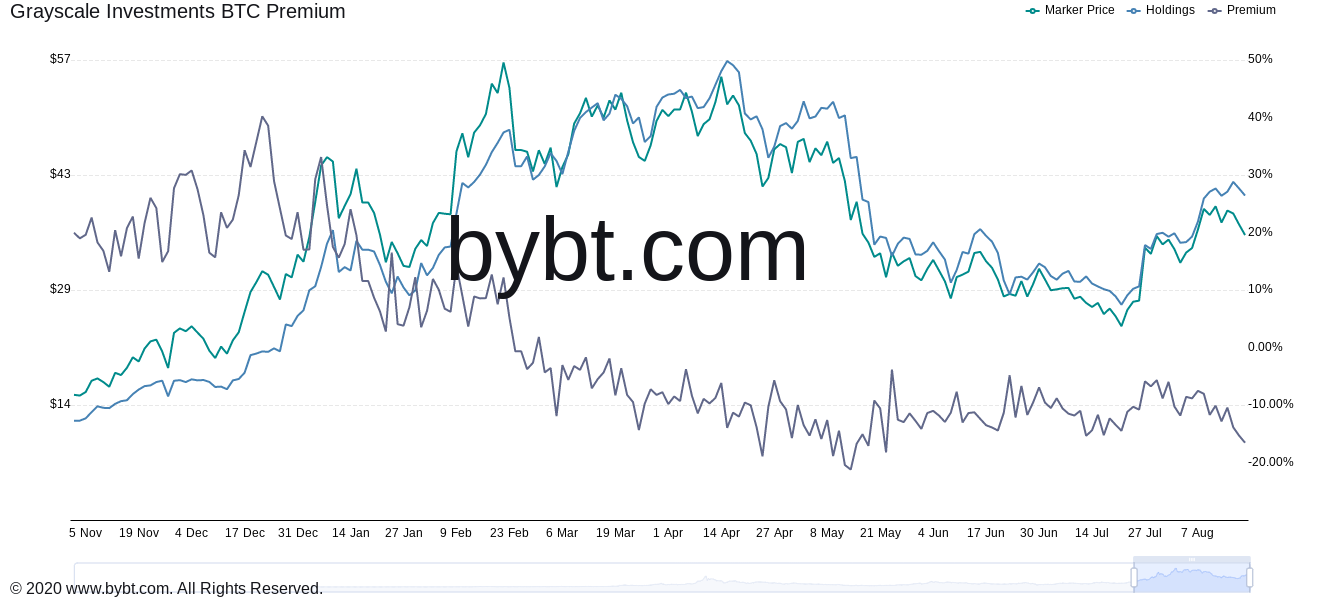 Knowledge on Thursday confirms that as BTC/USD trades close to $44,000, GBTC shares are over 16.5% beneath the spot value.