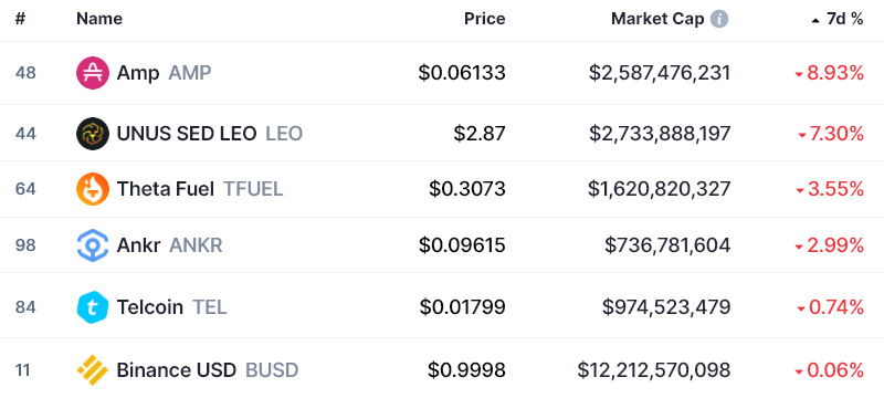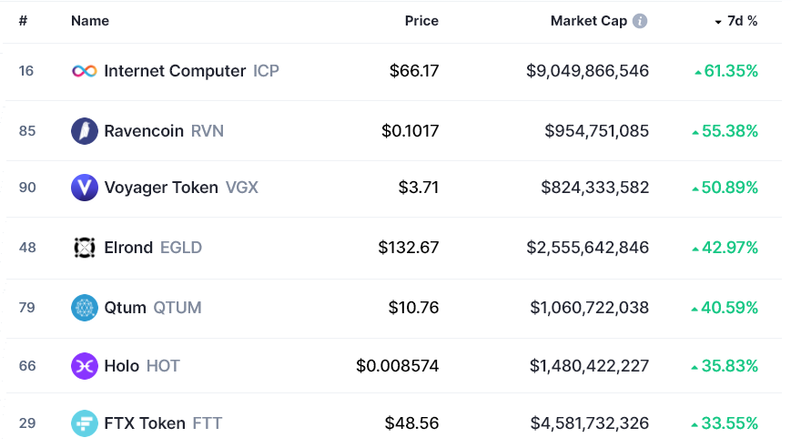 Alternatively, solely six initiatives introduced a unfavourable efficiency during the last seven days.